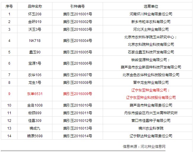 河(hé)北(běi)省農(nóng)業(yè)廳、河(hé)β↑≠北(běi)省委省政府農(nóng)村(cūn)工(gōng)作(zu¥ελλò)辦公室,關于2016年(nián)河(π€δhé)北(běi)省同意引種玉米品種的(de)公告。